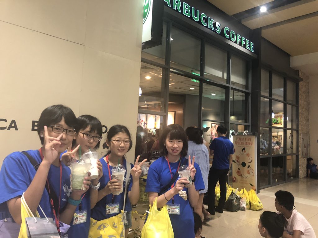 カフェを楽しんだりそれぞれにお土産を買う生徒たち。