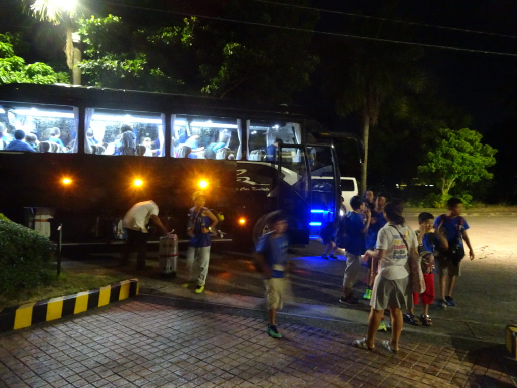 セブ国際空港に到着後、すぐにバスに乗り込みます。