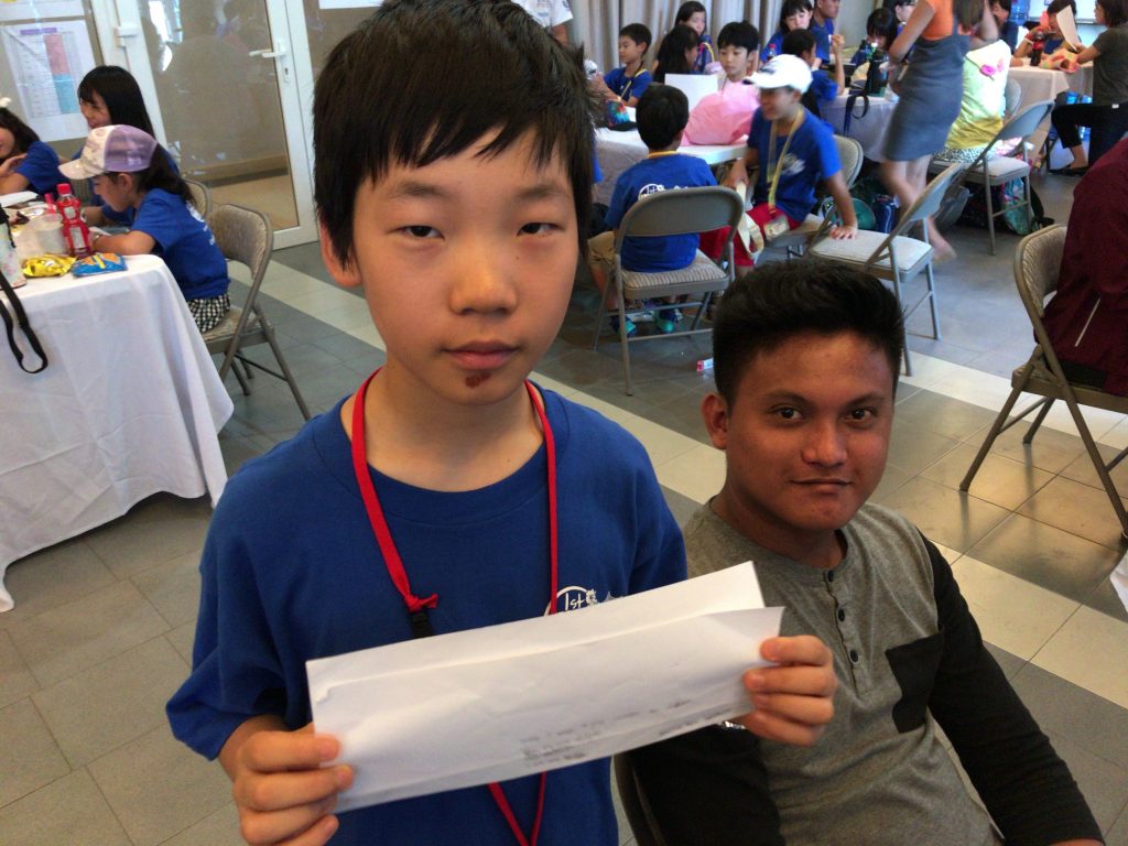 ジュニアキャンプの生徒たちが日本から持ってきたものを渡します。