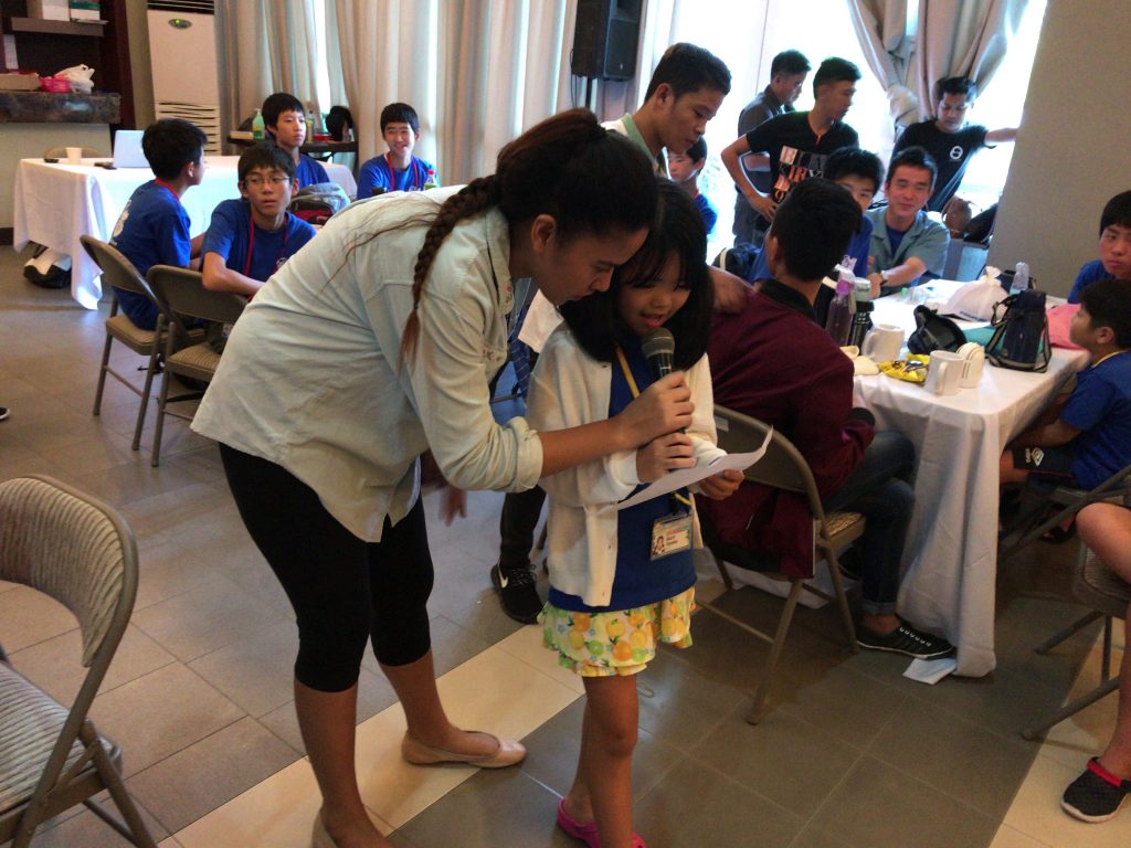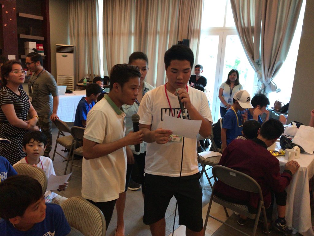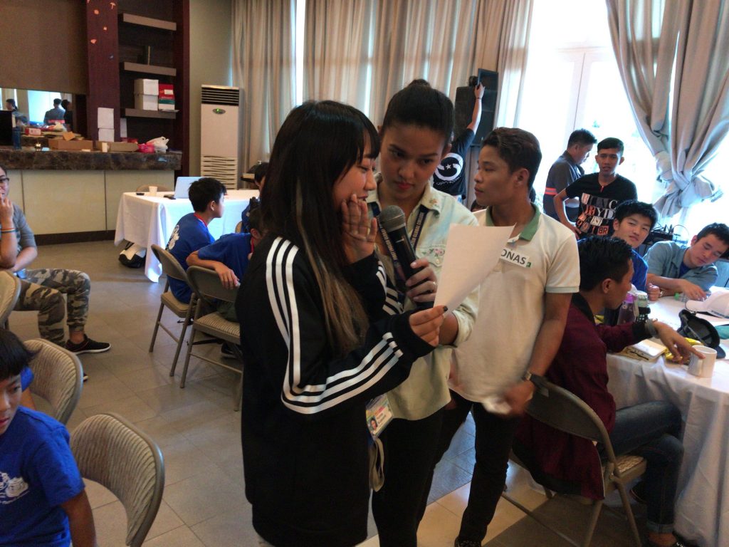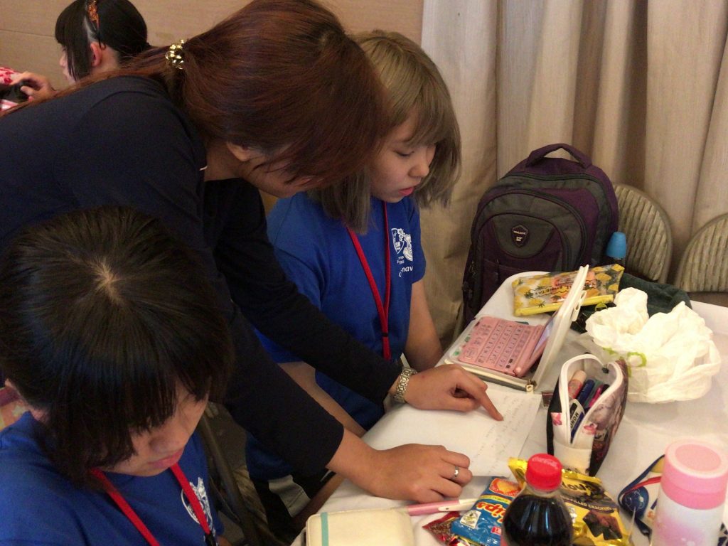 ジュニアキャンプのボランティアは分かち合いをする