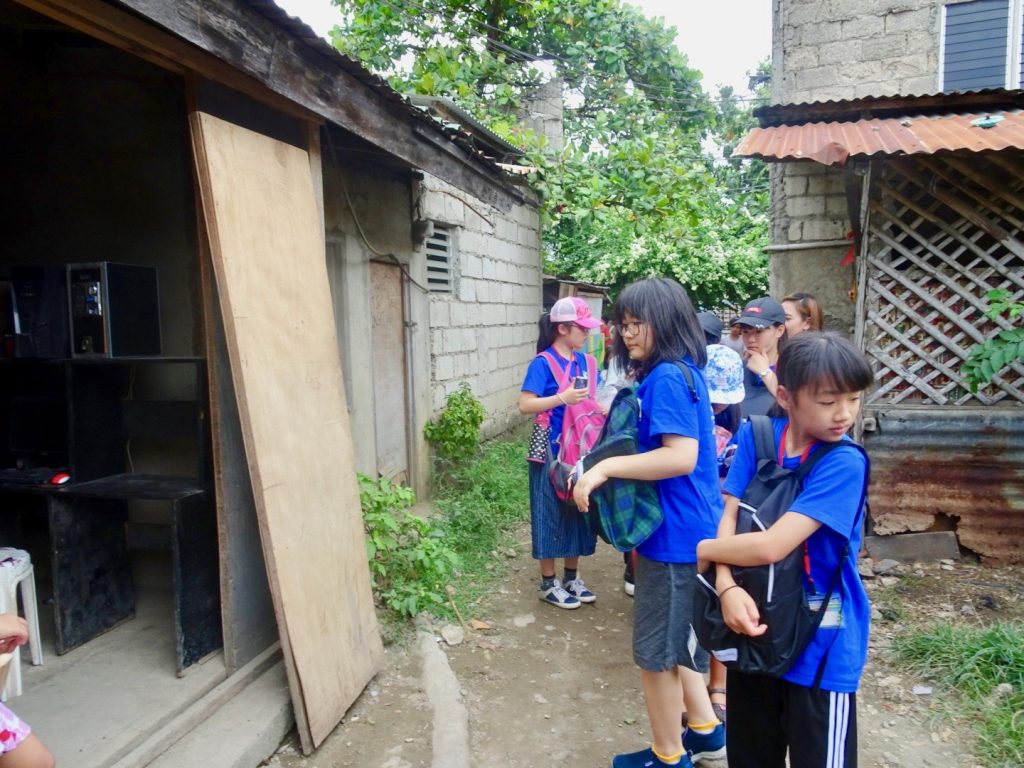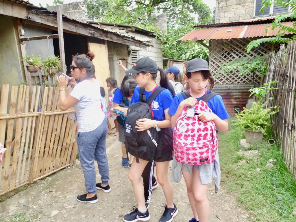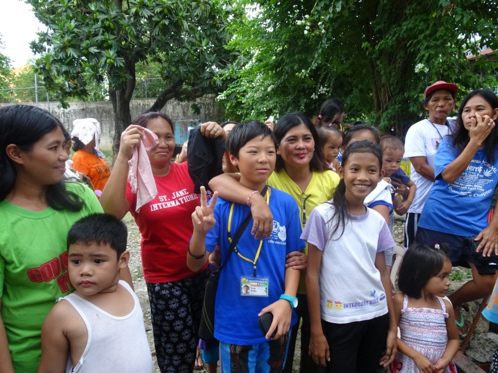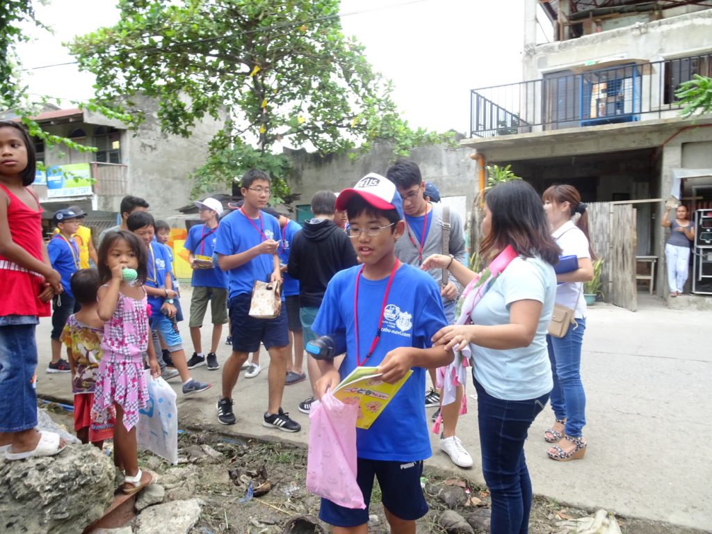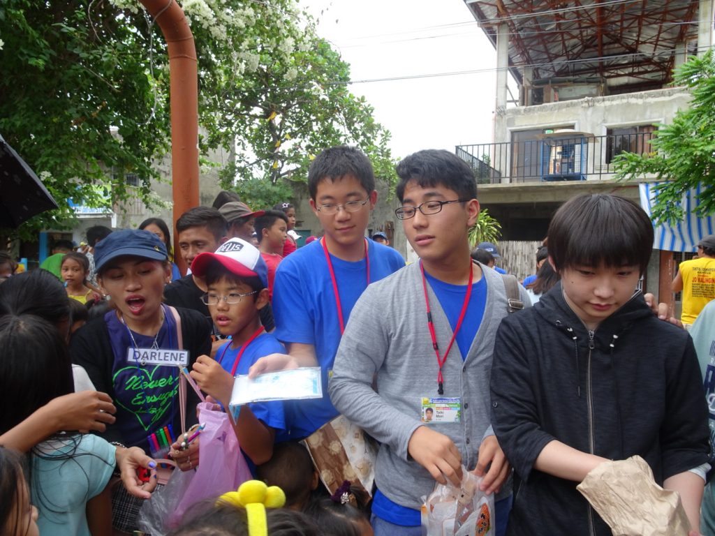 フィリピンの現地の子供たちと触れ合うのは初めての生徒たち。