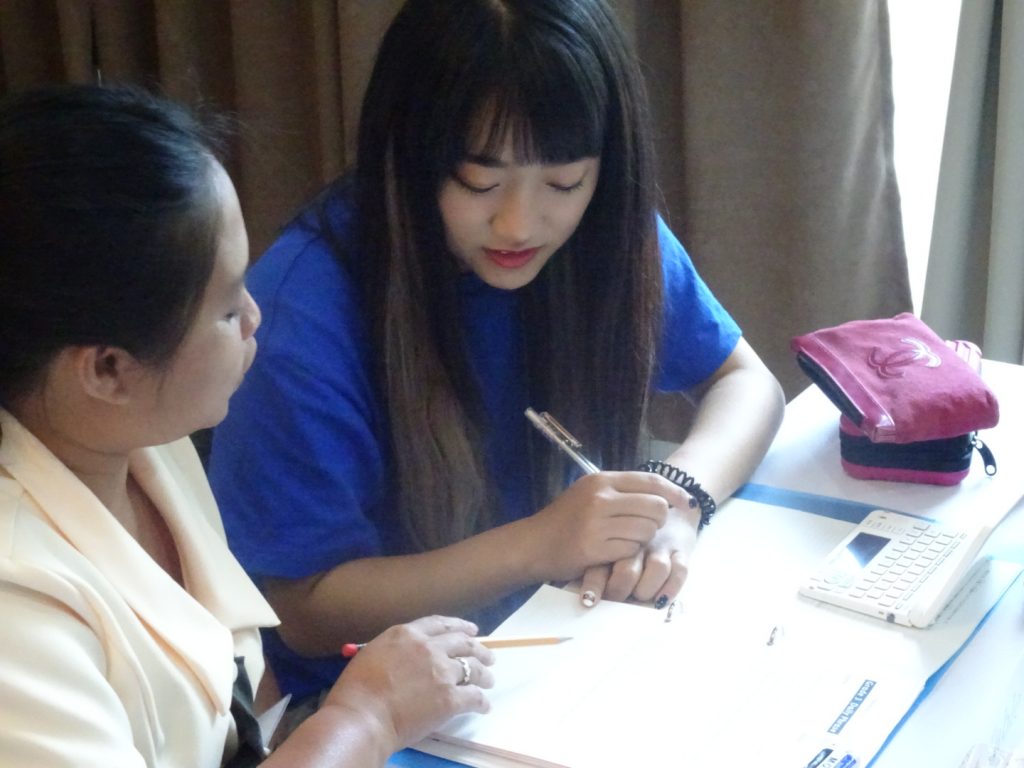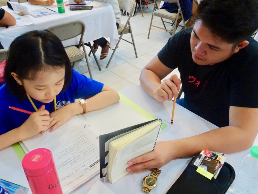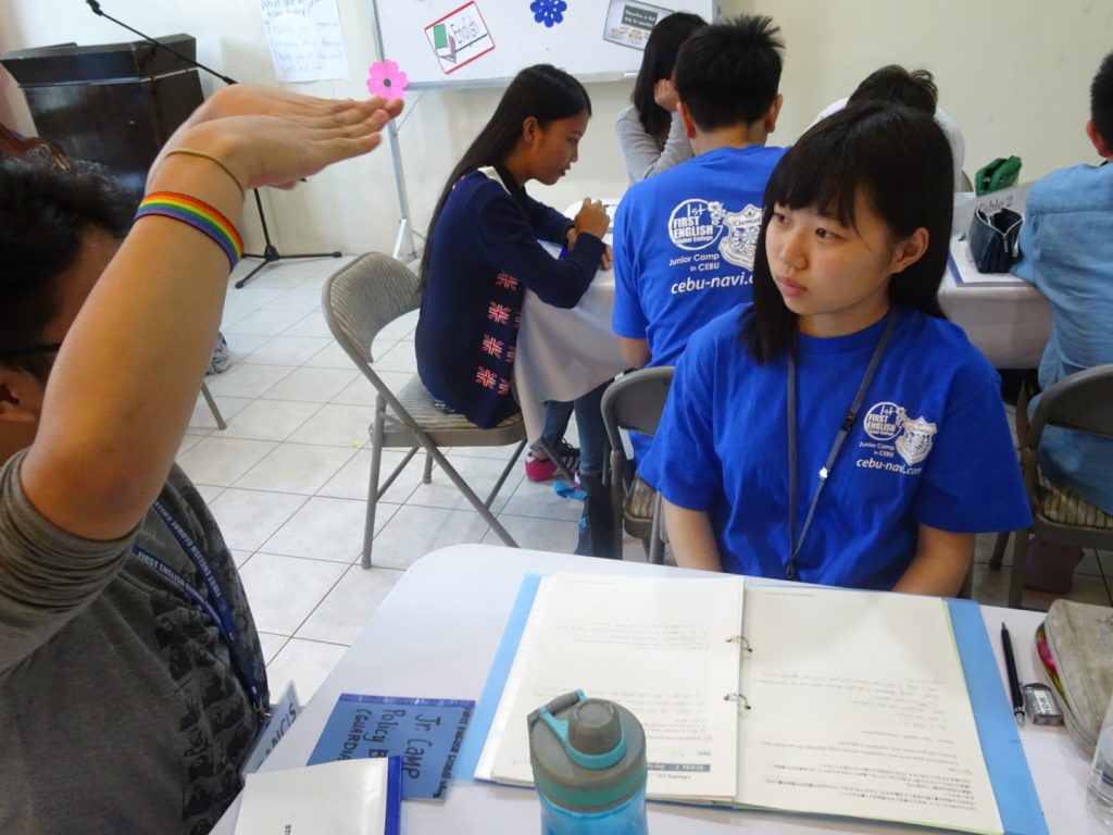 ジュニアキャンプで勉強を教えてもらったティーチャーから教わります。